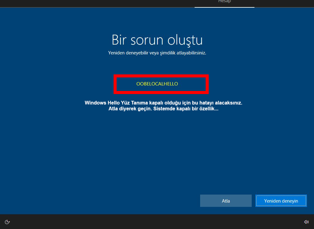 I had oobehello error at account setup's last part... when i pressed try again button and tried 10 times. it finally finished setup. idk why happened. never happened before.